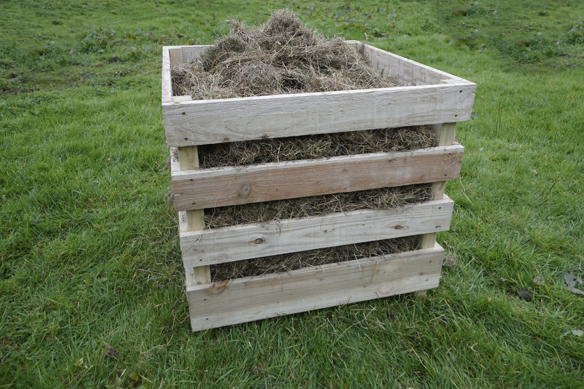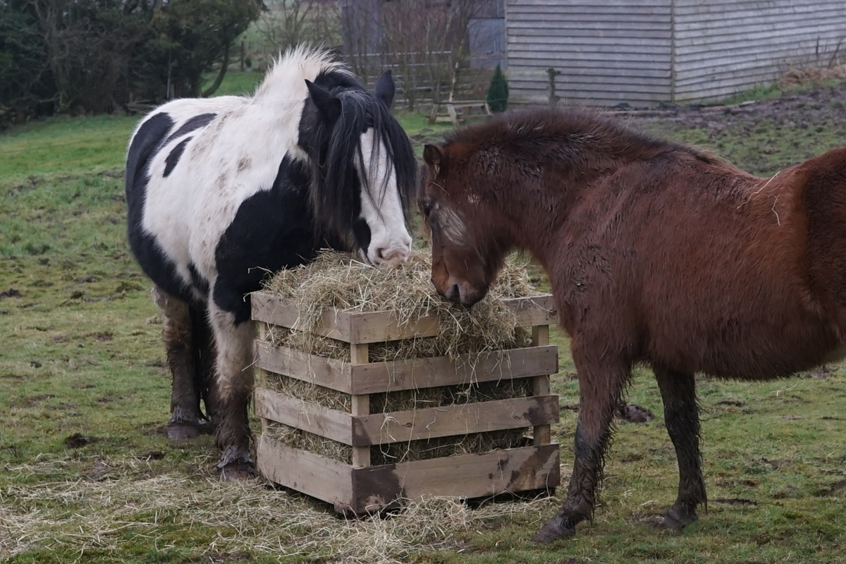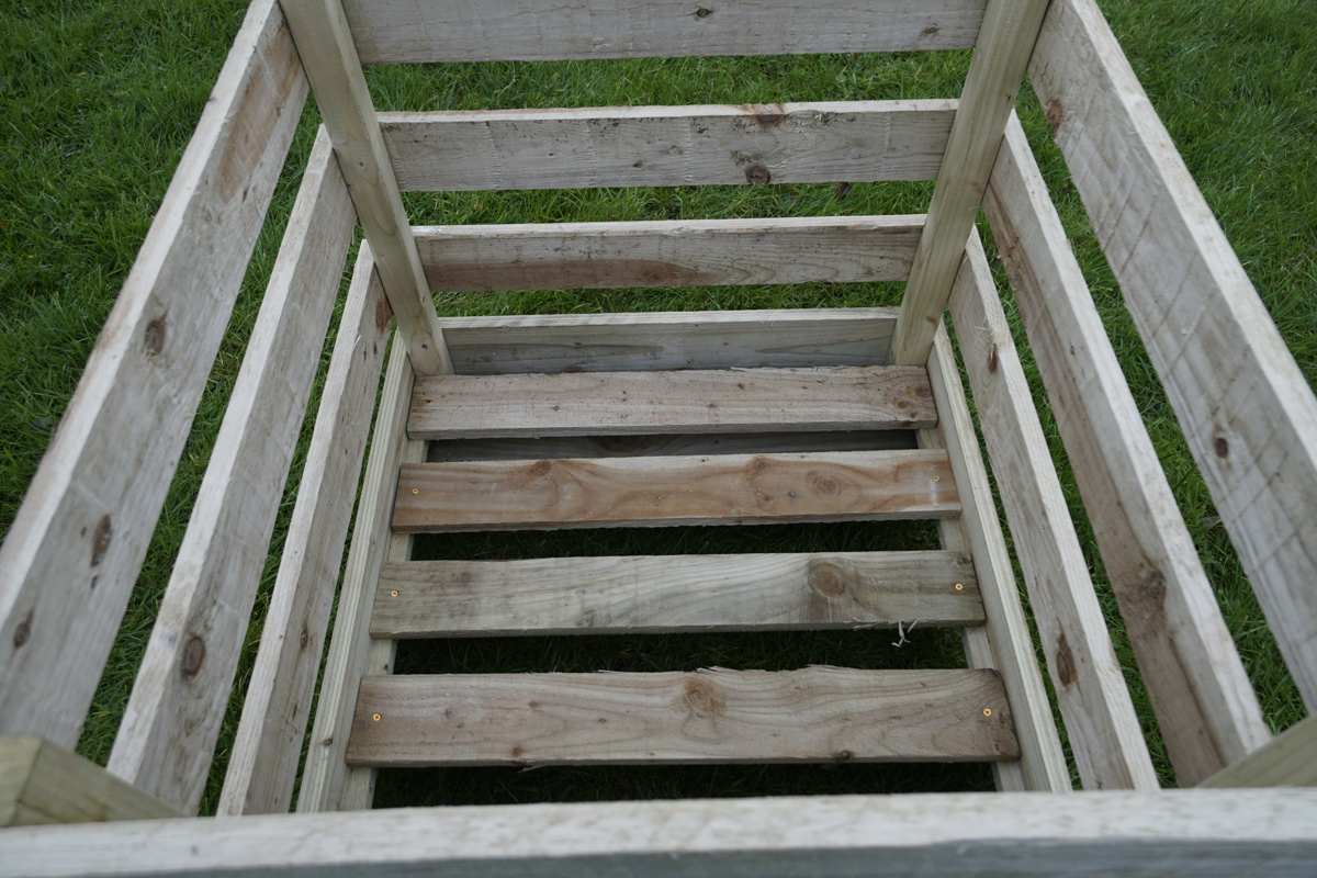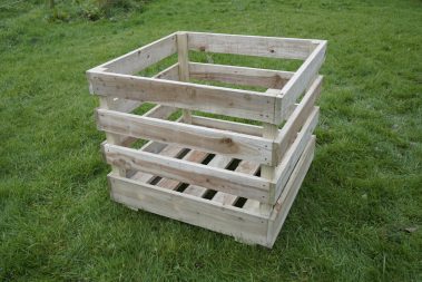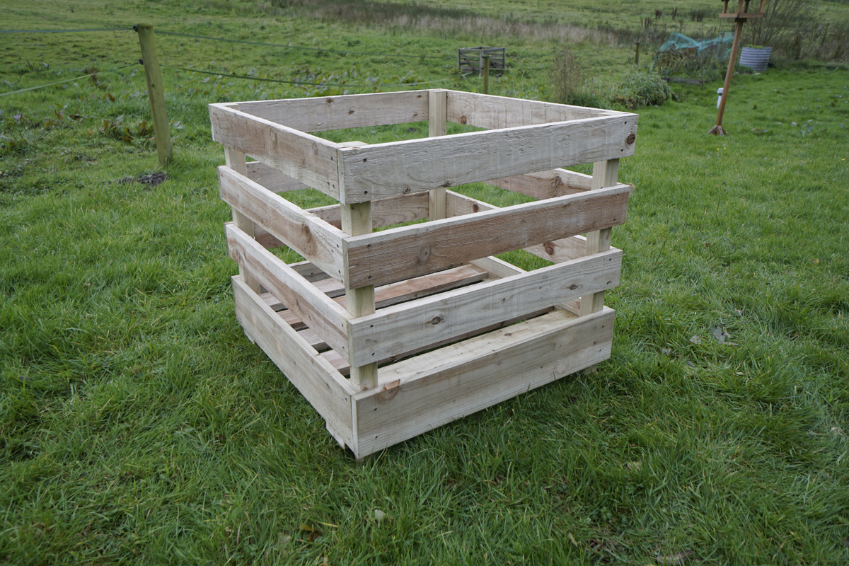 In order to keep delivery costs down the hay feeder box will be divided into two parcels, each parcel having a fully completed side, and half of the remaining boards. These are anchored down and corner protected for transit.